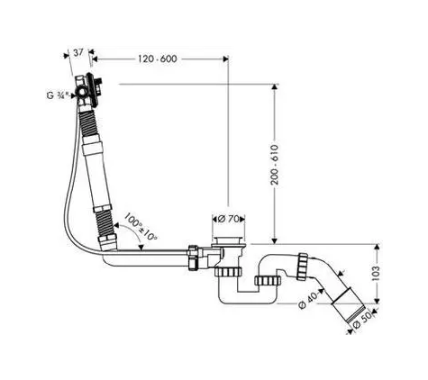 Hansgrohe Exafill S - Odtoková a přepadová souprava pro speciální vany 58116180