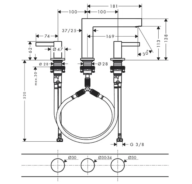 Hansgrohe Finoris - Umyvadlová baterie, 3-otvorová instalace, s výpustí Push-Open, EcoSmart, kartáčovaný černý chrom 76033340 Obvykle 1-2 měsíce |