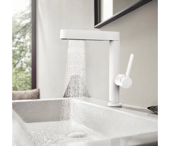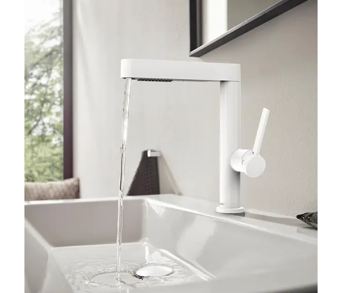 Hansgrohe Finoris - Umyvadlová baterie 230, s výpustí Push-Open a výsuvnou sprškou, EcoSmart, matná bílá 76063700