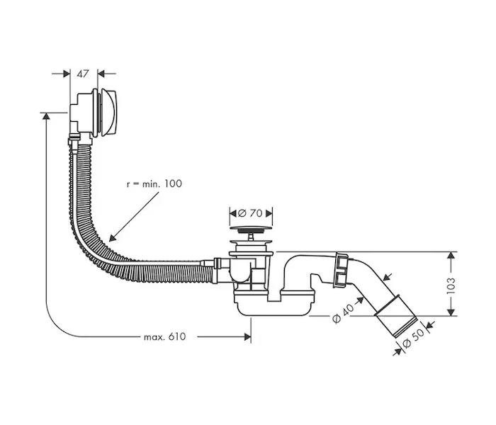 - výška vodní uzávěry: 50 mm