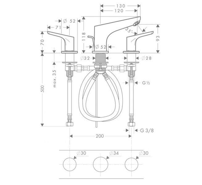 Hansgrohe Focus E2 - Umyvadlová baterie 100, 3-otvorová instalace, s odtokovou soupravou s táhlem, chrom 31937000