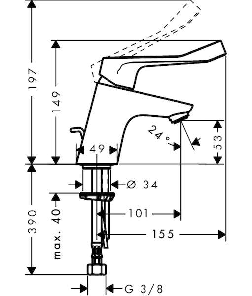 Páková umyvadlová baterie s prodlouženou rukojetí