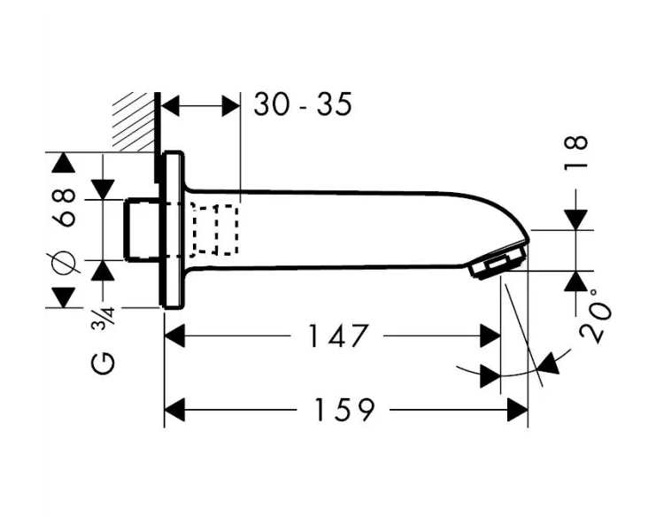 Hansgrohe Focus E2 - Vanový výtok, chrom 13414000