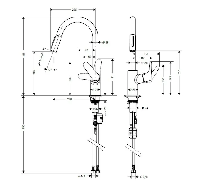 Hansgrohe Focus M41 - Dřezová baterie s výsuvnou sprškou, matná černá 31815670 Skladem u dodavatele > 10 ks |
