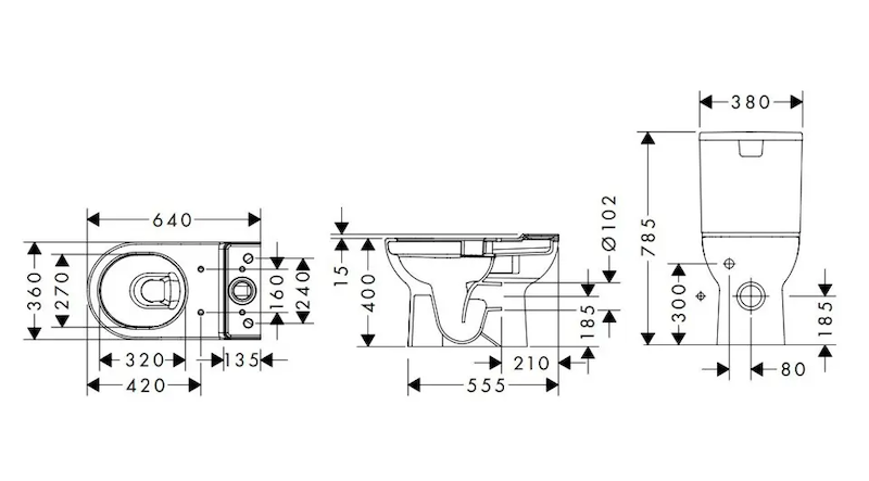 Volně stojící WC kombi 640 s univerzálním vývodem