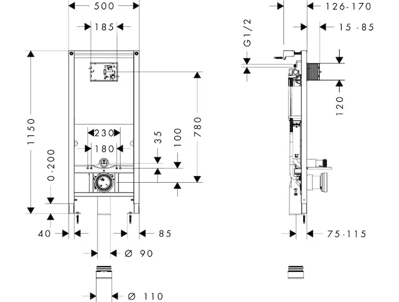 Hansgrohe iFrame universal - Předstěnový instalační set pro závěsné WC, výška 115 cm 01022180