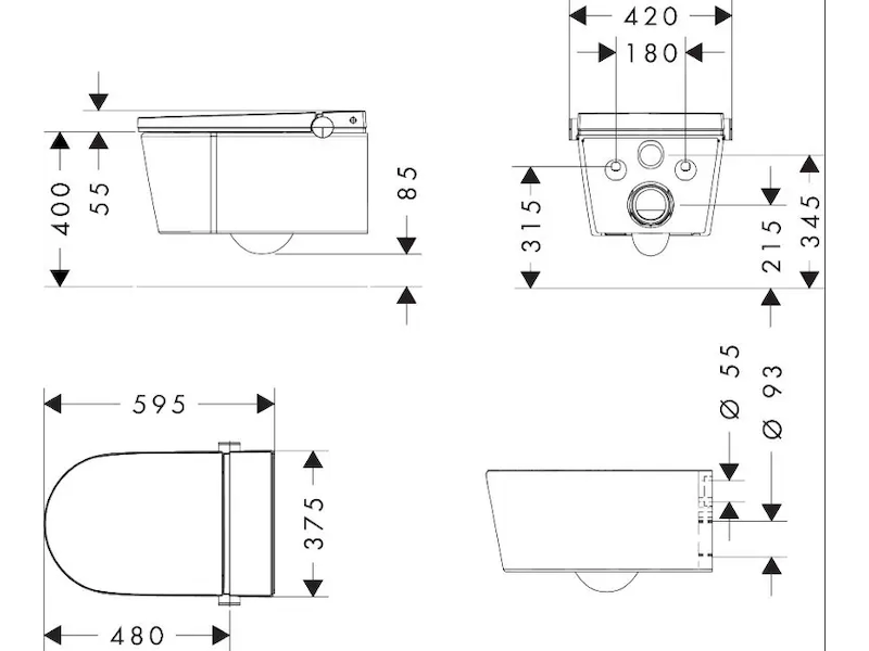 Hansgrohe LavaPura Element S - Elektronický bidet s keramikou, SoftClose, AquaHelix Flush, HygieneEffect, SmartClean, bílá 63021450