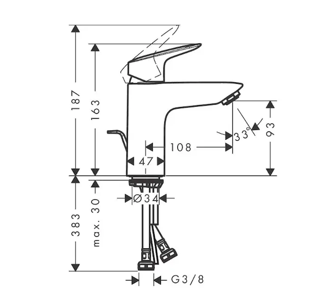 Páková umyvadlová baterie s výpustí