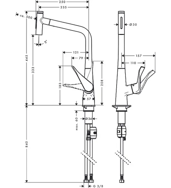 Hansgrohe M71 - Dřezová baterie Metris Select s výsuvnou sprškou, chrom 73820000 Obvykle 1-2 měsíce |