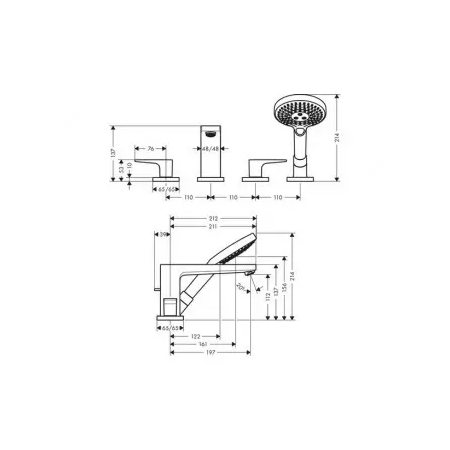 Hansgrohe Metropol - Baterie na okraj vany, 4-otvorová instalace, chrom 32552000