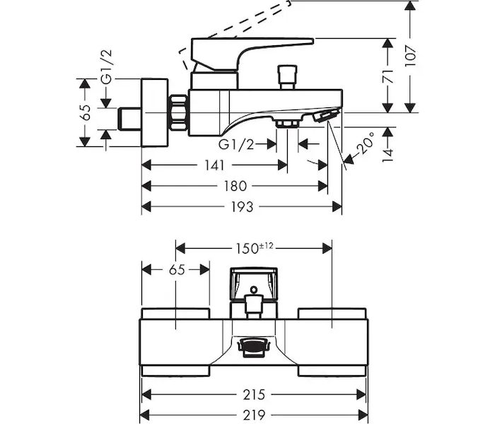 - rozteč středů: 150 mm ± 12 mm