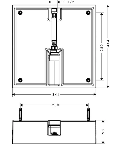 Hansgrohe Montážní tělesa - Základní těleso pro horní sprchu Raindance E, 400x400 mm 26254180