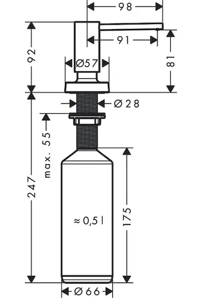Hansgrohe Příslušenství - Dávkovač mycích prostředků A51, 500 ml, chrom 40448000