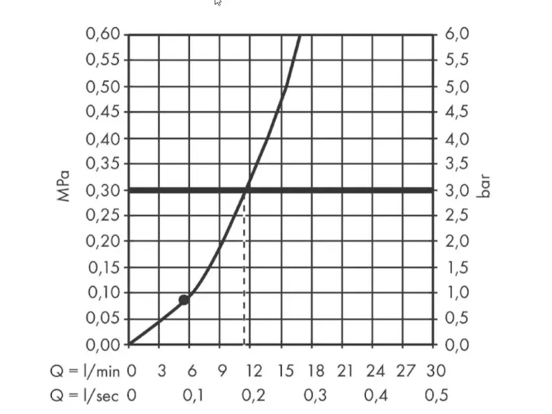 - maximální průtok při 0,3 MPa: 11,7 l / min