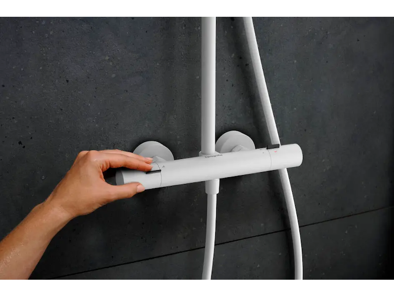 Hansgrohe Pulsify S Puro - Sprchový set s termostatem, průměr 26 cm, 1 proud, EcoSmart, matná bílá 24223700