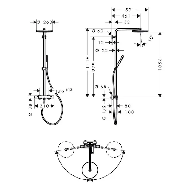 - maximální průtokové množství pro Showerpipe při tlaku 3 bary: 11,2 l/min