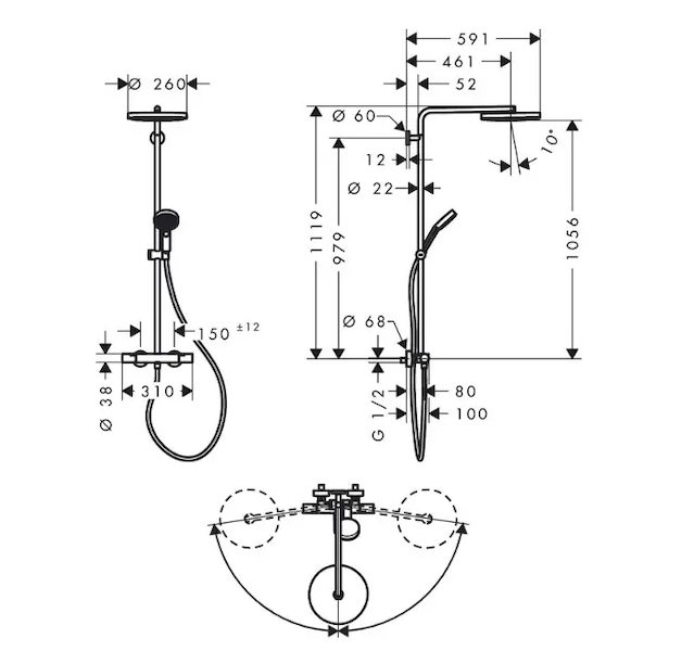 Nástěnný sprchový set Pulsify S Puro Showerpipe 260