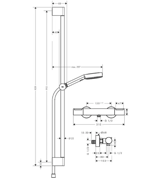 - otočný a výškově nastavitelný jezdec k uchycení ruční sprchy