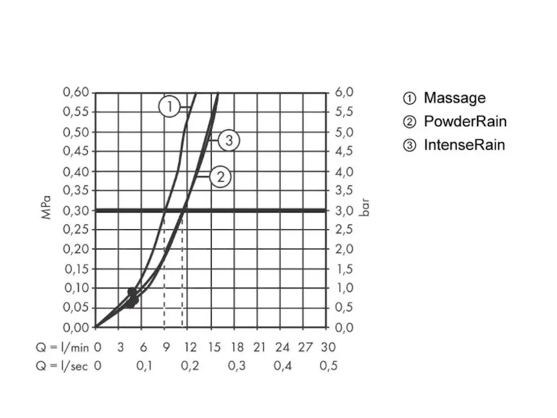 - sprchový proud: PowderRain, IntenseRain, masážní proud