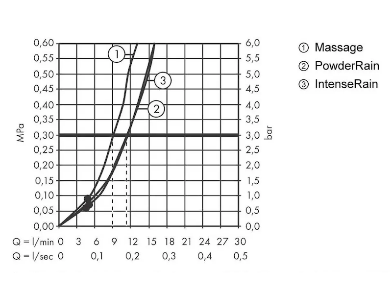 - sprchový proud: PowderRain, IntenseRain, masážní proud