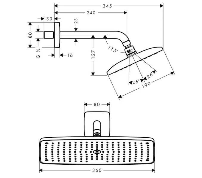 Hansgrohe Raindance E - Hlavová sprcha 360, s ramenem sprchy 24 cm, chrom 27371000