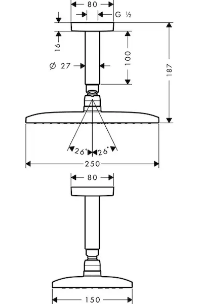 Horní sprcha S 240 s přívodem od stropu
