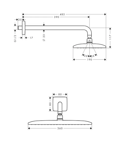 - velikost sprchové hlavice: 360 x 190 mm
