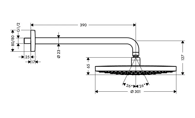 - délka ramena sprchy: 390 mm