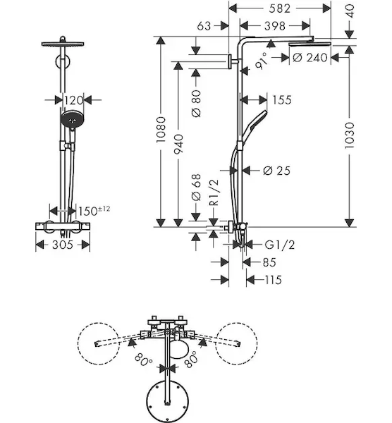 nástěnnou termostatickou sprchovou baterii