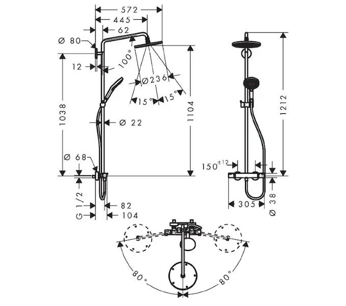 - délka ramena sprchy: 430 mm