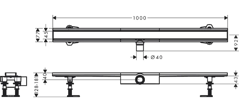 Hansgrohe RainDrain Compact - Sprchový žlab 100 cm, s roštem, kartáčovaná nerezová ocel 56182800 Skladem u dodavatele 1 ks |