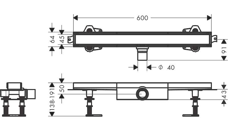 Hansgrohe RainDrain Compact - Sprchový žlab 60 cm pro vložení dlažby, s roštem 56175000 skladem u dodavatele 4 ks |