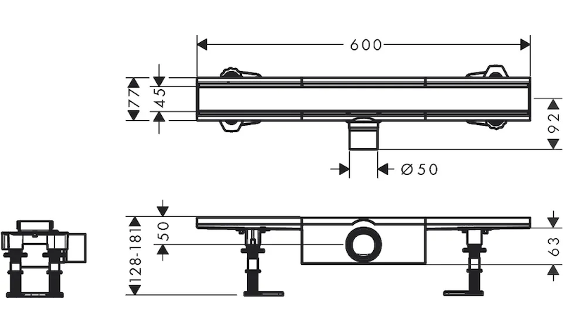 Hansgrohe RainDrain Compact - Sprchový žlab 60 cm, s roštem, kartáčovaná nerezová ocel 56162800 Skladem u dodavatele 1 ks |