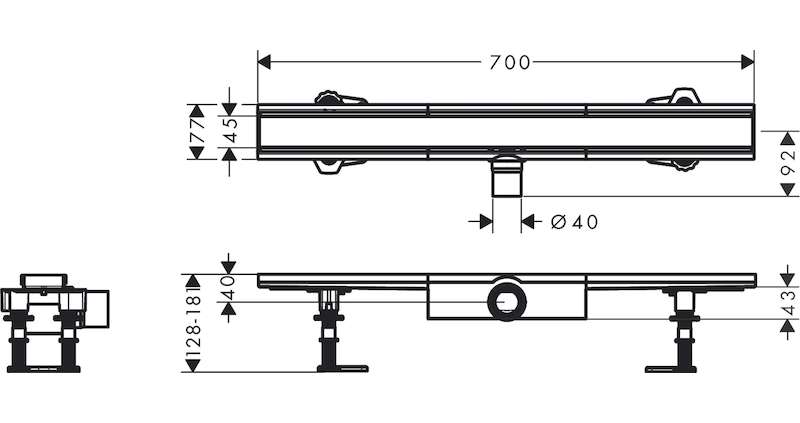 Hansgrohe RainDrain Compact - Sprchový žlab 70 cm, s roštem, kartáčovaná nerezová ocel 56176800 skladem u dodavatele 1 ks |