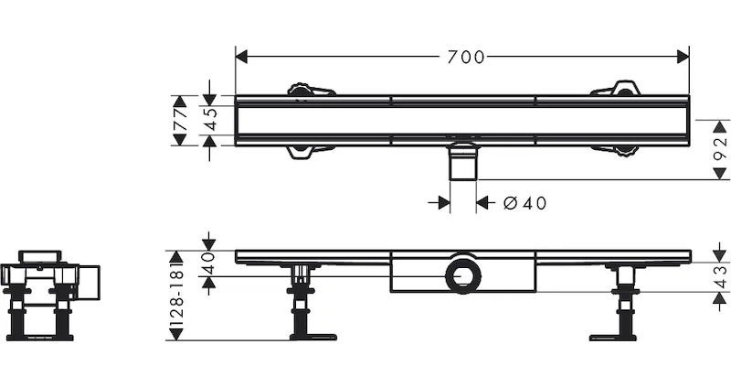 Hansgrohe RainDrain Compact - Sprchový žlab 70 cm, s roštem, kartáčovaná nerezová ocel 56176800 Obvykle 1-2 měsíce |