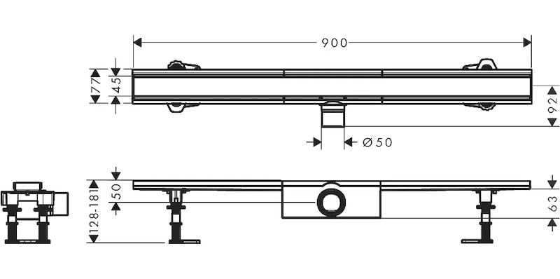 Hansgrohe RainDrain Compact - Sprchový žlab 90 cm, s roštem, kartáčovaná nerezová ocel 56168800 Obvykle 1-2 měsíce |