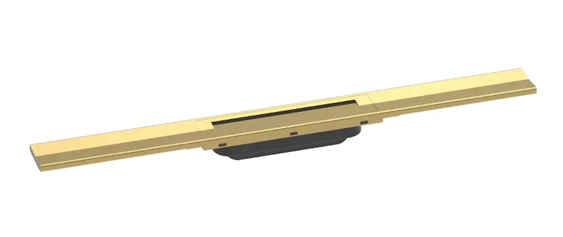 Hansgrohe RainDrain Flex - Lineární sprchový žlab s nerezovým roštem 700, do prostoru, zkrátitelný, leštěný vzhled zlata 56043990