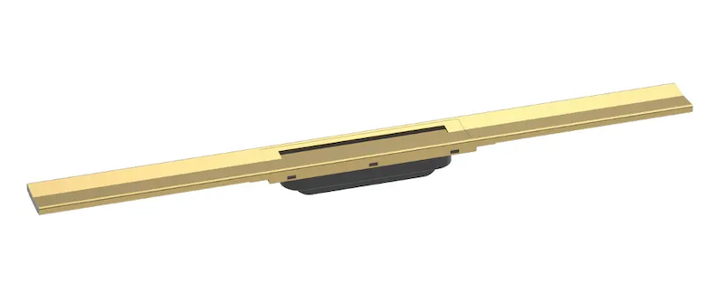 Hansgrohe RainDrain Flex - Lineární sprchový žlab s nerezovým roštem 800, do prostoru, zkrátitelný, leštěný vzhled zlata 56044990