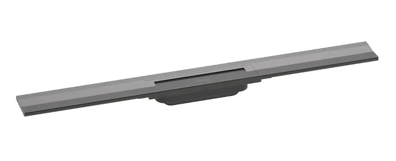 Hansgrohe RainDrain Flex - Lineární sprchový žlab s nerezovým roštem 800, ke stěně, zkrátitelný, kartáčovaný černý chrom 56051340