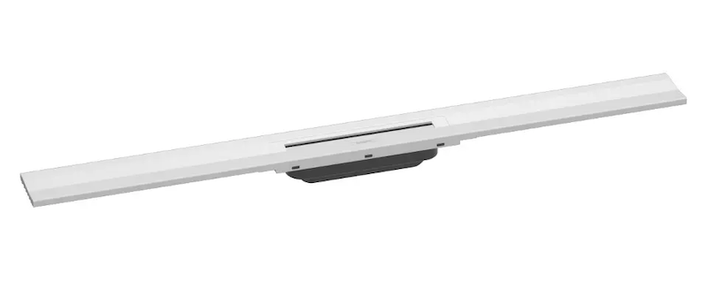 Hansgrohe RainDrain Flex - Lineární sprchový žlab s nerezovým roštem 900, ke stěně, zkrátitelný, matná bílá 56052700