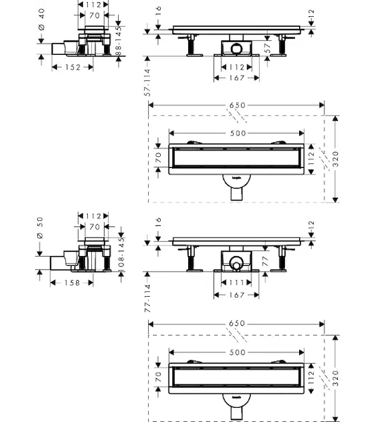 Úplná sada sprchového žlabu 500, pro standardní/plochou instalaci