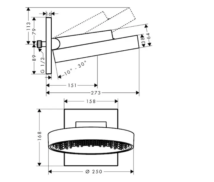 - hlavová sprcha vertikálně nastavitelná v rozmezí 10-30°