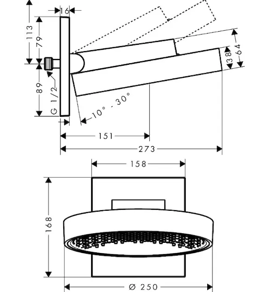 - rameno sprchy vertikálně nastavitelné o 10-30°
