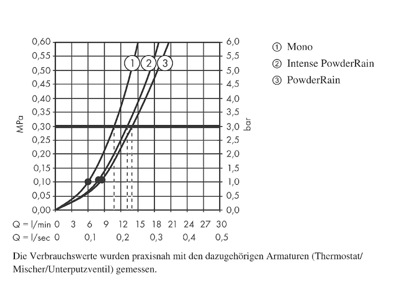 - druh proudu: proud PowderRain, Intense PowderRain, MonoRain
