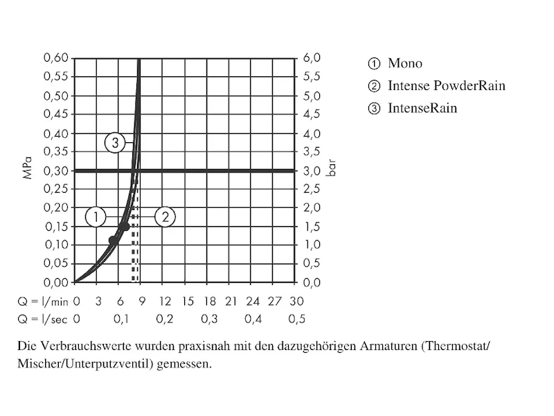- druh proudu: proud PowderRain, Intense PowderRain, MonoRain