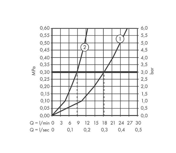 - průtok přívodem k ruční sprše při 0,3 MPa: 18,3 l/ min