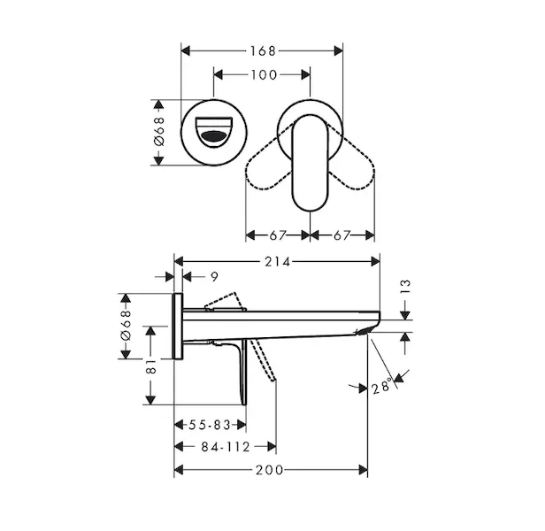 Hansgrohe Rebris S - Umyvadlová baterie pod omítku, 2-otvorová instalace, matná černá 72528670 Skladem u dodavatele 8 ks |