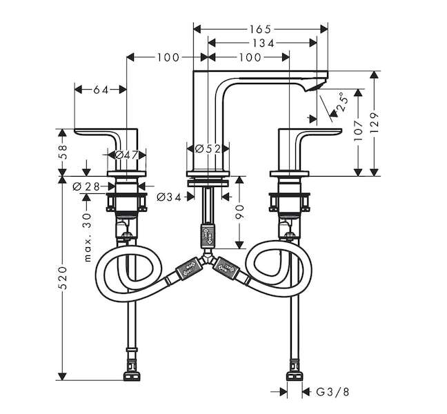 Hansgrohe Rebris S - Umyvadlová baterie s výpustí, 3-otvorová instalace, chrom 72530000