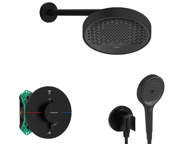 Hansgrohe - Sprchový set s termostatem pod omítku, s tělesem, průměr 25 cm, 3 proudy, matná černá SANI21HHH406