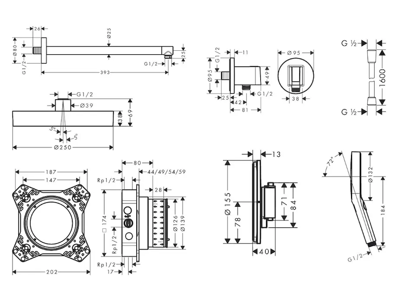 Hansgrohe - Sprchový set s termostatem pod omítku, s tělesem, průměr 25 cm, 3 proudy, chrom SANI21HHH006 Obvykle 1-2 měsíce |